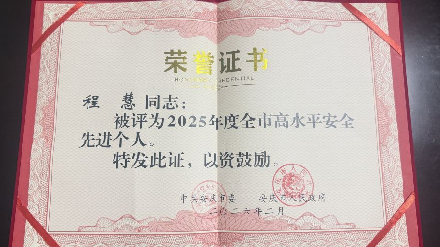 2月25日,安庆市召开2025年度高质量发展表彰表扬大会,盟员程慧荣获“2025年度全市经济社会高质量发展和高水平安全先进个人”称号。